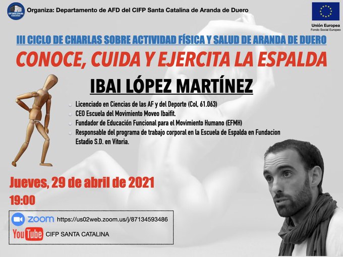 29 abril, jueves, 19:00h: "Conoce, cuida y ejercita la espalda"