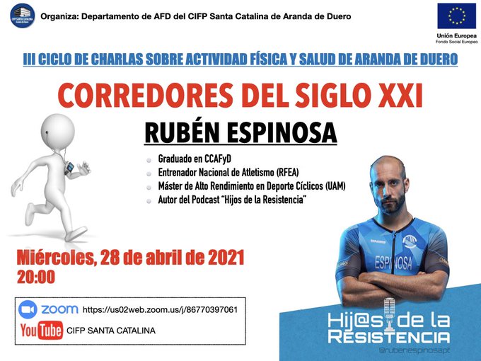 La semana pasada comenzó el III Ciclo de Charlas sobre la Actividad Física y Salud organizadas por el Dpto. de Actividades Físicas y Deportivas del CIFP Santa Catalina. Se trata de un proyecto aula-empresa financiado por el Fondo Social Europeo que tiene como finalidad que los alumnos de 1º de TSEAS completen y mejoren la formación del módulo de “Valoración de la condición física”.